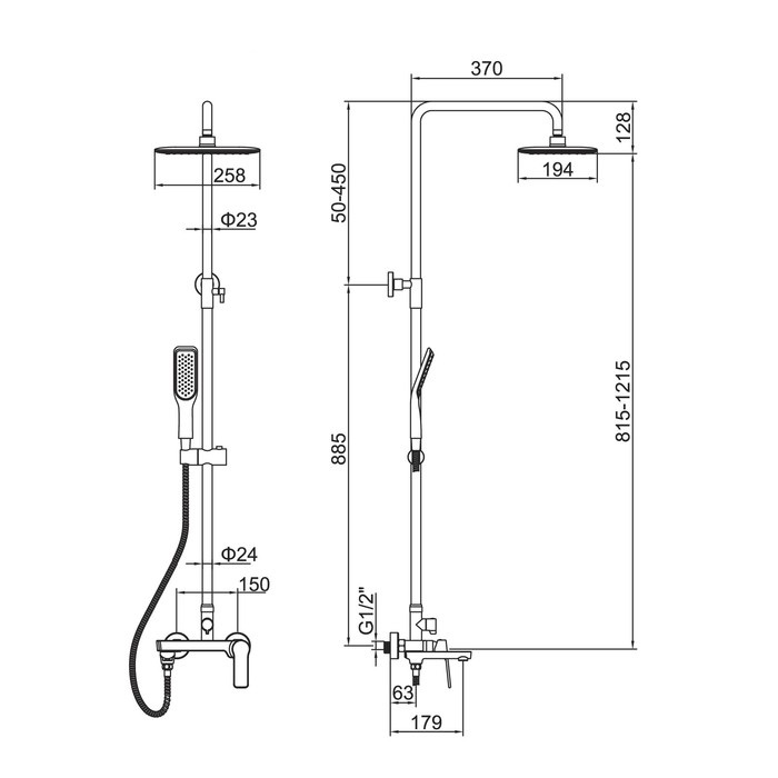 Cмесителем для ванны с тропическим душем + штанга A8304 Accoona