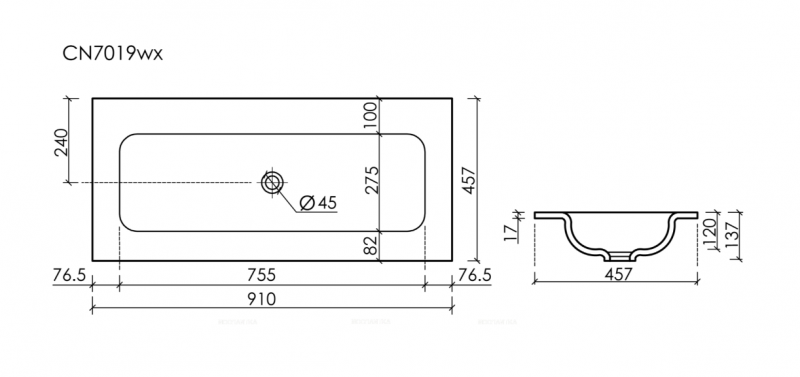 Раковина мебельная Grace прямоугольная 910*457*137, CN7019Wx без отвер. под смеситель, белый Ceramica Nova