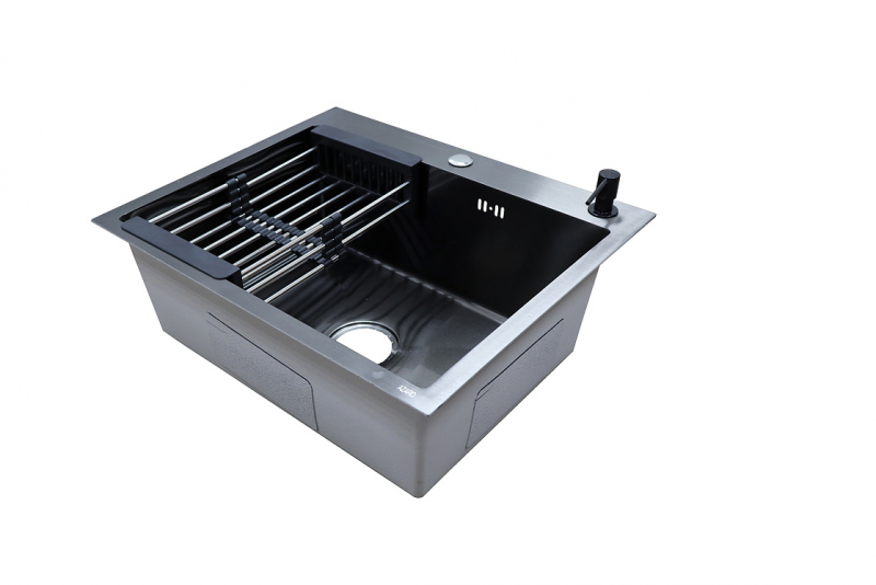 Мойка кухонная AZARIO NICOLE (500*500*220) нержавеющая сталь черная (сифон, диспенсер,коландер) Azario