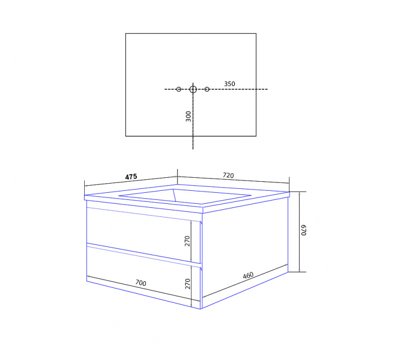 Тумба Мила 60 (580*540*460) подвесная БЕЗ РАКОВИНЫ Monte 60 Azario