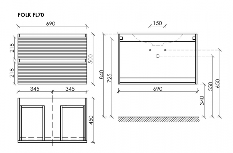 Тумба SANCOS подвесная Folk 2я цв. Ergraut Soft, FL70ES Sancos