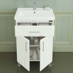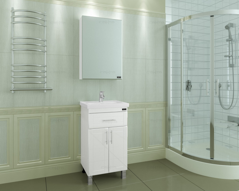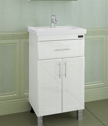 Тумба напольная Дублин 50 с одним ящиком и двумя дверцами под раковину Como 50. Корпус и фасад изделия выполнены из влагостойкого МДФ и покрыты глянцевой ПВХ-плёнкой.