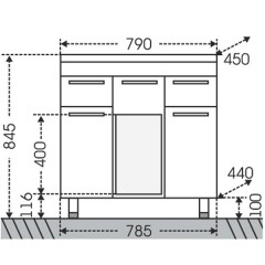 Тумба оснащена механизмами плавного и бесшумного закрытия, направляющими скрытого монтажа.