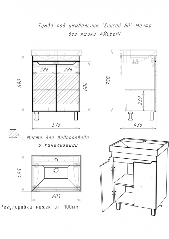 Тумба под умывальник "Енисей 60" Мечта без ящика АЙСБЕРГ DM2309T по низкой цене в наличии в интернет-магазине сантехники «Водолей» в Азнакаево. Мы предлагаем самую низкую цену на тумба под раковину производителя Домино. Приобрести Тумба под умывальник "Енисей 60" Мечта без ящика АЙСБЕРГ DM2309T выгодно Вы можете on-line на нашем сайте, или отправив заявку по почте, а также по телефону 8 (927) 672-07-77 или в магазине.