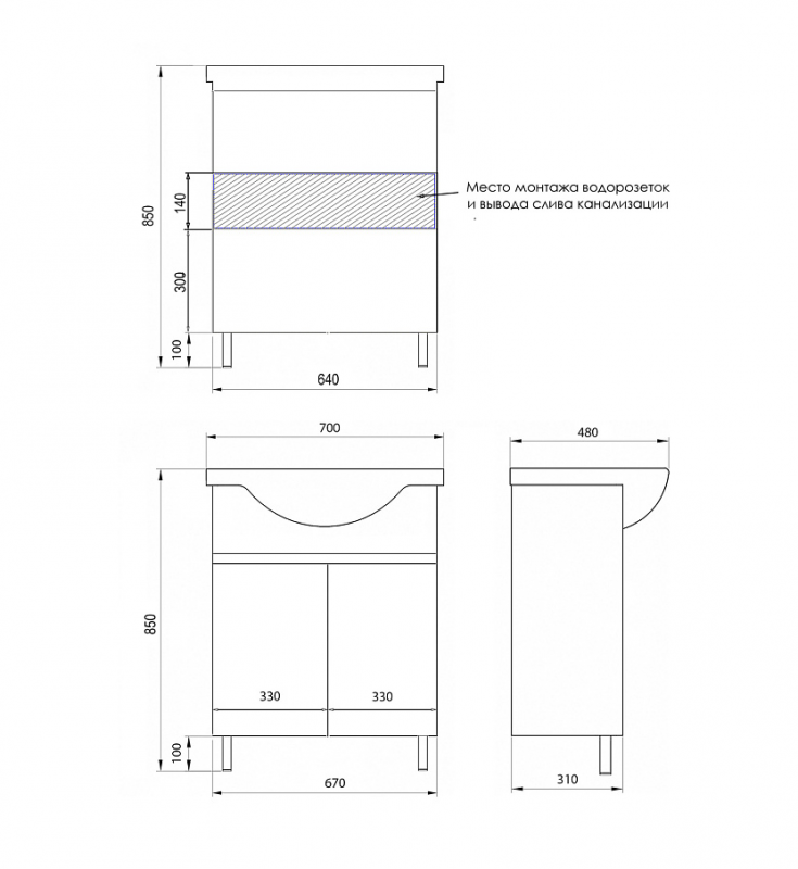 Тумба Loranto Ирис 70Н напольная, с раковиной Teo 70, белый (CS00093566) Loranto