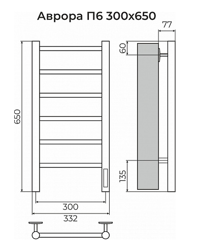 Полотенцесушитель TERMINUS Аврора П6 300х650 Электро (quick touch) TERMINUS