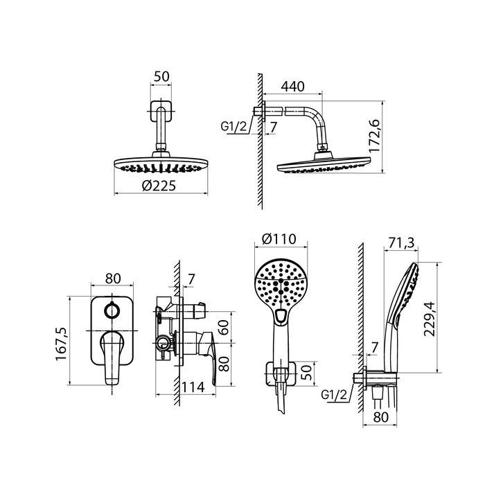 Душевая система скрытого монтажа с тропическим душем и ручным душем, Ray, IDDIS, RAYSB02i67 IDDIS