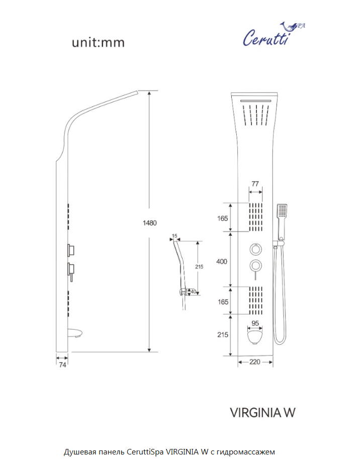 Душевая панель из нерж стали, цвет белый, 1500х220 мм Ceruttispa 9990 VIRGINIA W Cerutti